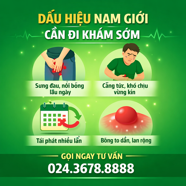 Bóng dương vật không đơn thuần là biểu hiện bên ngoài. Trong nhiều trường hợp, đây có thể là DẤU HIỆU cảnh báo viêm nhiễm hoặc rối loạn nam khoa đang tiến triển âm thầm. Nếu chủ quan kéo dài, không chỉ sinh hoạt hàng ngày của người bệnh bị ảnh hưởng, mà còn phải đối mặt với nguy cơ bị mắc thêm các bệnh nam khoa khác, chức năng sinh lý và khả năng sinh sản đều bị giảm sút.