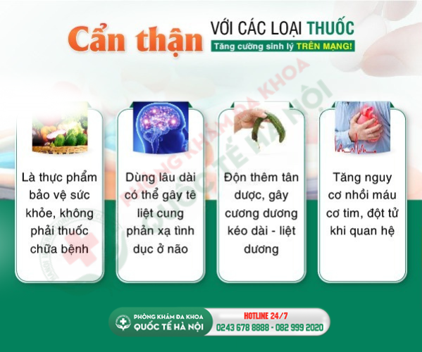 Tuy nhiên, thuốc chỉ phát huy tác dụng khi dùng đúng liều, đúng thời điểm và tuân thủ tuyệt đối hướng dẫn của bác sĩ chuyên khoa. Việc tự ý mua hoặc lạm dụng thuốc “cường dương cấp tốc”, “uống vào là khỏe ngay” trôi nổi trên mạng có thể dẫn đến những hậu quả nghiêm trọng: