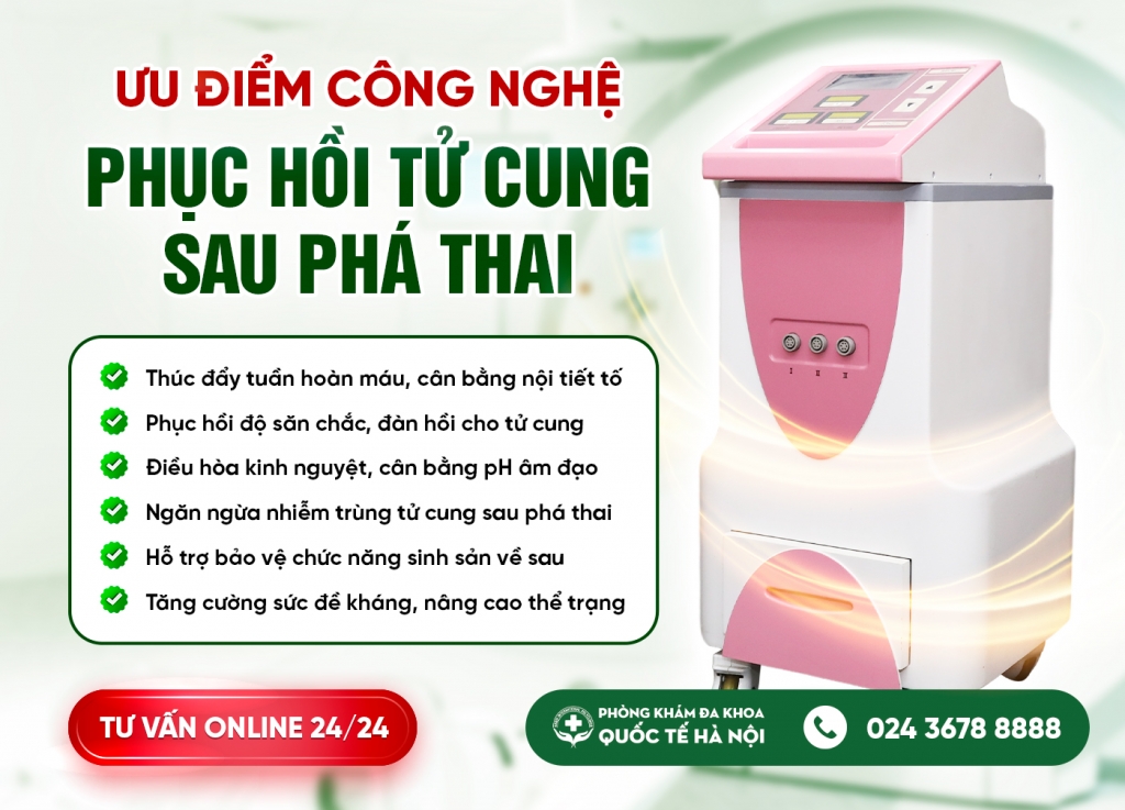 Tại phòng khám, sau khi đình chỉ thai chị em còn được sử dụng MIỄN PHÍ công nghệ phục hồi bảo vệ chức năng của tử cung, bảo vệ chức năng sinh sản – đánh bay nỗi lo vô sinh, nhiễm trùng sau phá thai. (ƯU ĐÃI MIẾN PHÍ CHỈ DÀNH CHO BỆNH NHÂN ĐẶT HẸN TRƯỚC)