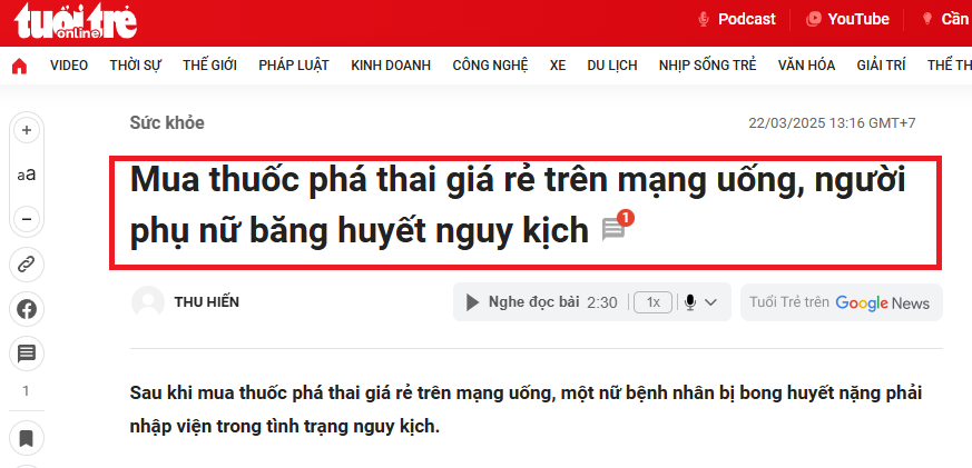 Trên thực tế, hiện nay có rất nhiều quảng cáo “thuốc phá thai giá rẻ” tràn lan trên mạng, chỉ vài trăm nghìn đồng với lời hứa hẹn “100% thành công”. Vì tin tưởng và ham rẻ, không ít chị em đã tự mua về sử dụng, để rồi phải đối mặt với những hậu quả nặng nề cho sức khỏe, thậm chí đe dọa cả tính mạng.