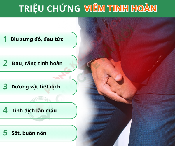 Ngoài cảm giác đau tức một hoặc hai bên tinh hoàn, người bệnh còn có các triệu chứng khác như: