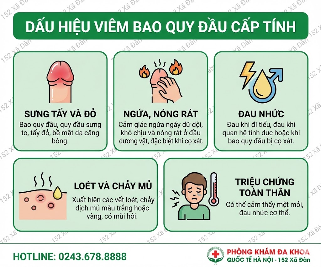 Triệu chứng viêm bao quy đầu cấp tính (mức độ bệnh nhẹ)