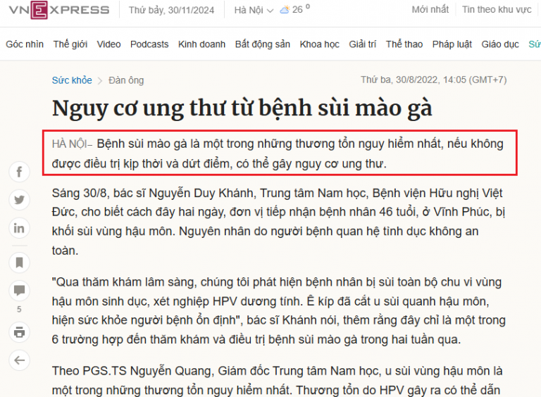 Chữa sùi mào gà ở đâu? Gợi ý địa chỉ chữa sùi mào gà uy tín top 1 Hà Nội không được phép bỏ qua