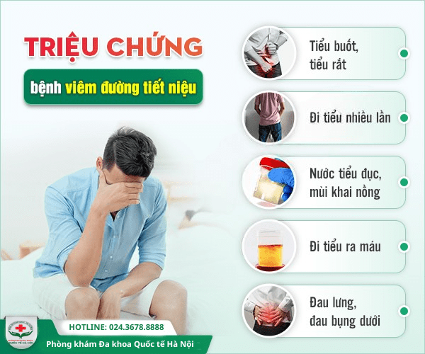 Và tiểu buốt, tiểu rát là một trong những triệu chứng điển hình của bệnh. Ngoài ra, người bệnh còn có các triệu chứng kèm theo khác như: