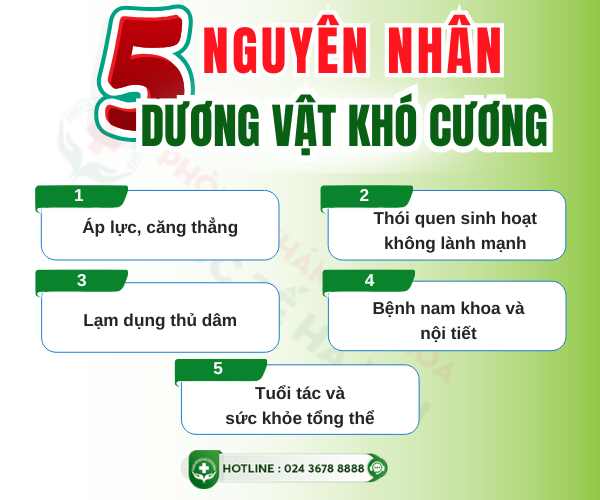 Tình trạng dương vật khó cương, cương chậm, mất nhiều thời gian kích thích và đặc biệt là không duy trì được độ cương trong suốt quá trình giao hợp cho thấy có sự bất thường trong quá trình cương dương (rối loạn cương dương). Cụ thể, đây là biểu hiện của việc máu không được bơm đủ vào thể hang dương vật hoặc khả năng giữ máu tại thể hang kém. Hệ quả là dương vật không đạt được hoặc không duy trì được độ cứng cần thiết để thực hiện giao hợp trọn vẹn.