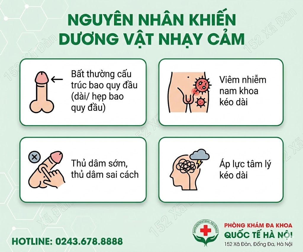 THÔNG TIN ƯU ĐÃI: Nhằm giúp nam giới sớm nhận diện đúng nguyên nhân khiến dương vật nhạy cảm, Đa khoa Quốc tế Hà Nội đang triển khai Gói khám chức năng sinh lý nam chỉ từ 230K giúp chẩn đoán nhanh nguyên nhân gây xuất tinh sớm cho người bệnh đăng ký trước TẠI ĐÂY với số lượng ưu đãi có hạn