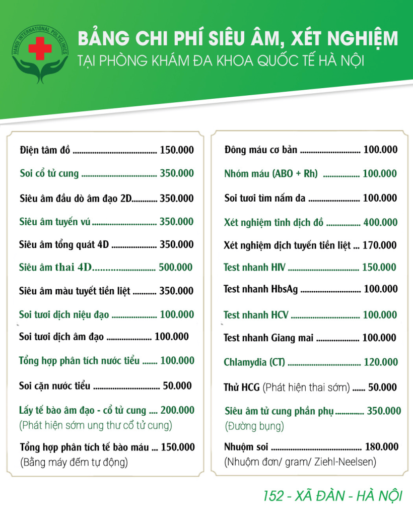 Gói khám sùi mào gà 200K tại Phòng khám Đa khoa Quốc tế Hà Nội không chỉ bao gồm các hạng mục thăm khám cần thiết, mà còn đi kèm ưu đãi đặc biệt khi giảm 30 – 50% chi phí thủ thuật (nếu có) dành cho những bệnh nhân đặt lịch trước TẠI ĐÂY