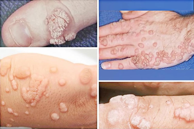 Hình ảnh sùi mào gà ở chân tay được biểu hiện như sau:
