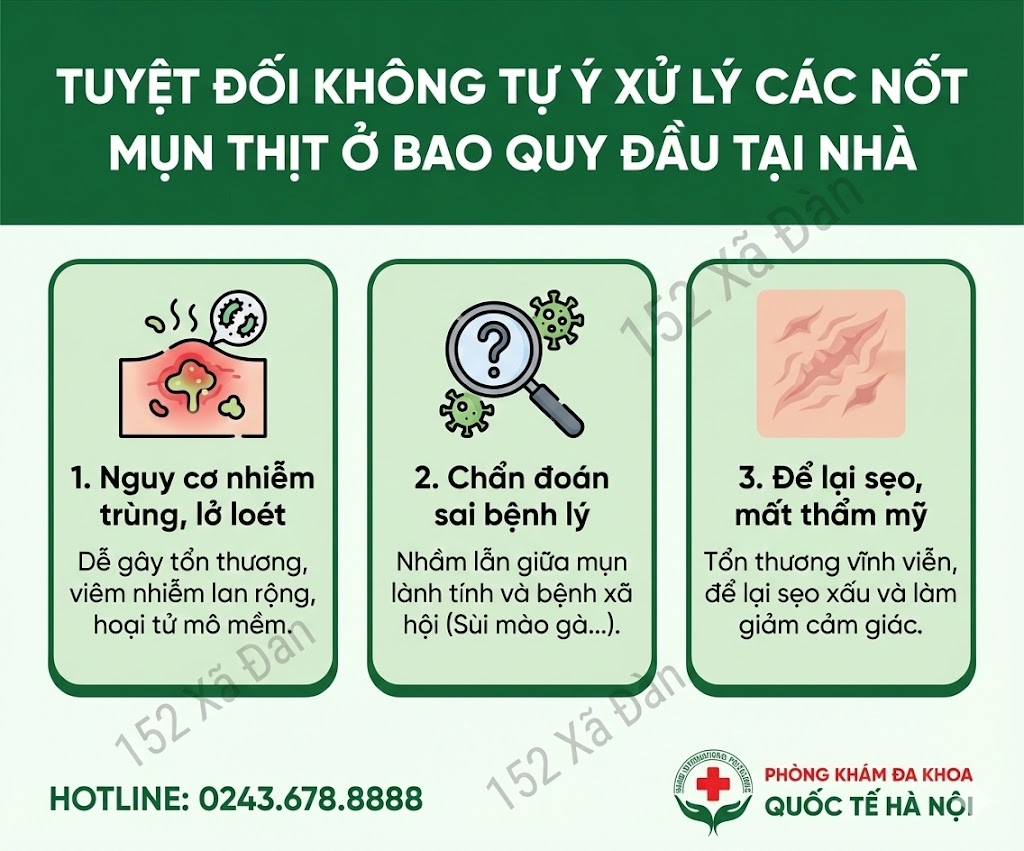 “Bao quy đầu xuất hiện mụn thịt kèm theo tình trạng tiết dịch mủ và mùi hôi là dấu hiệu bất thường rõ ràng, không nên chủ quan. Đây không còn là biểu hiện sinh lý đơn thuần mà rất có khả năng liên quan đến các bệnh lý lây truyền qua đường tình dục, trong đó sùi mào gà do virus HPV là nguyên nhân thường gặp nhất.”