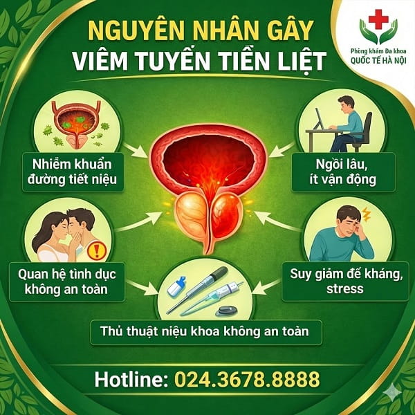 • Đặt ống thông tiểu hoặc can thiệp y tế không vô trùng có thể đưa vi khuẩn trực tiếp vào tuyến tiền liệt.