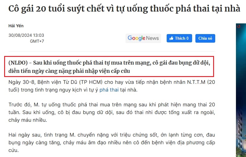 Nguy hiểm lớn nhất nằm ở việc thực hiện phá thai không an toàn: Nhiều chị em vì lo sợ, vì ngại, vì muốn kín đáo hoặc vì điều kiện kinh tế mà tìm đến những địa chỉ không đảm bảo: phòng khám chui, tự phá thai bằng thuốc mua online, thậm chí dùng những cách dân gian chưa được kiểm chứng. Và đó chính là lúc biến chứng xảy ra.