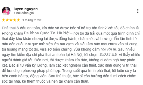 Review đình chỉ thai an toàn tại đa khoa quốc tế Hà Nội