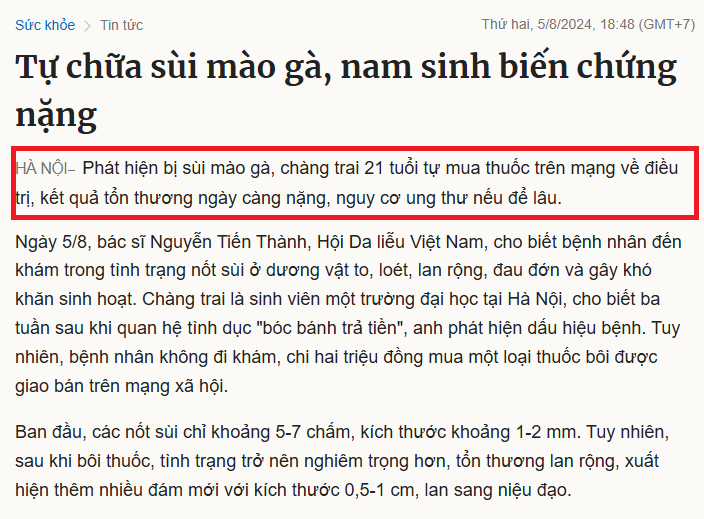 Trong suốt hơn 30 năm thăm khám, điều trị bệnh lây qua đường tình dục, bác sĩ Nguyên cho biết rất nhiều nam giới dù biết bản thân đang có triệu chứng nghi ngờ mắc sùi mào gà nhưng lại lựa chọn không đi khám chỉ vì ngại, xấu hổ sợ bị đánh giá hay lo ngại chi phí thăm khám, điều trị tốn kém. Thay vào đó, nhiều người lựa chọn các phương án được cho là “rẻ – nhanh – kín đáo” như tự mua thuốc theo mách bảo trên mạng hay nguy hiểm hơn là tự “đốt” nốt sùi bằng mẹo dân gian.