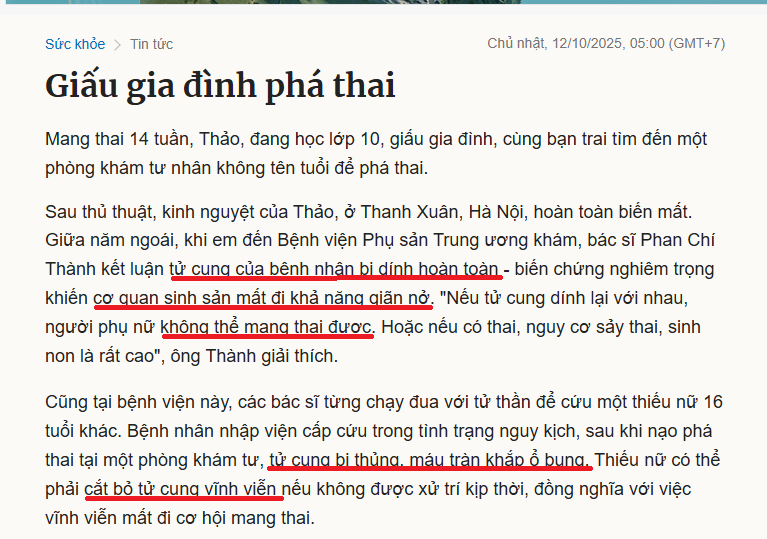 ❌ Bác sĩ tay nghề yếu → làm sai kỹ thuật → Sót thai, sót nhau.