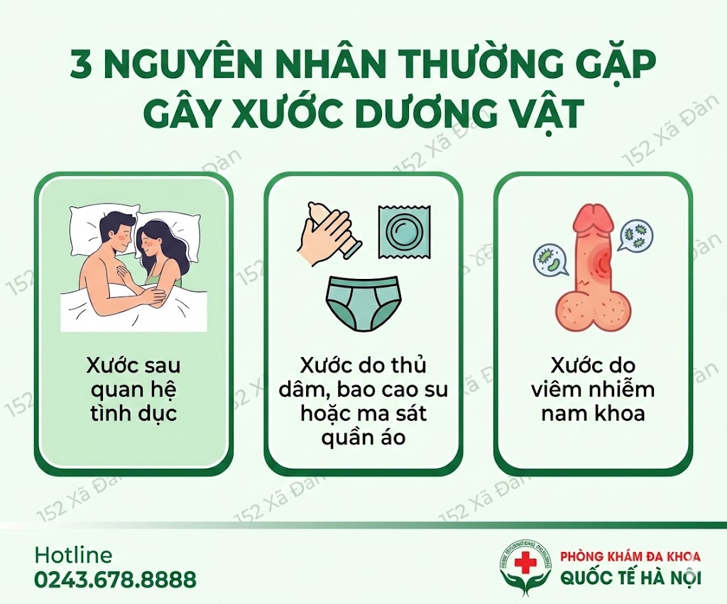 Bác sĩ CKII Lê Đỗ Nguyên cho biết, không phải cứ thấy dương vật bị xước là giống nhau. Trên thực tế, có 3 trường hợp gây xước dương vật điển hình, và mỗi nguyên nhân lại tiềm ẩn mức độ rủi ro khác nhau.